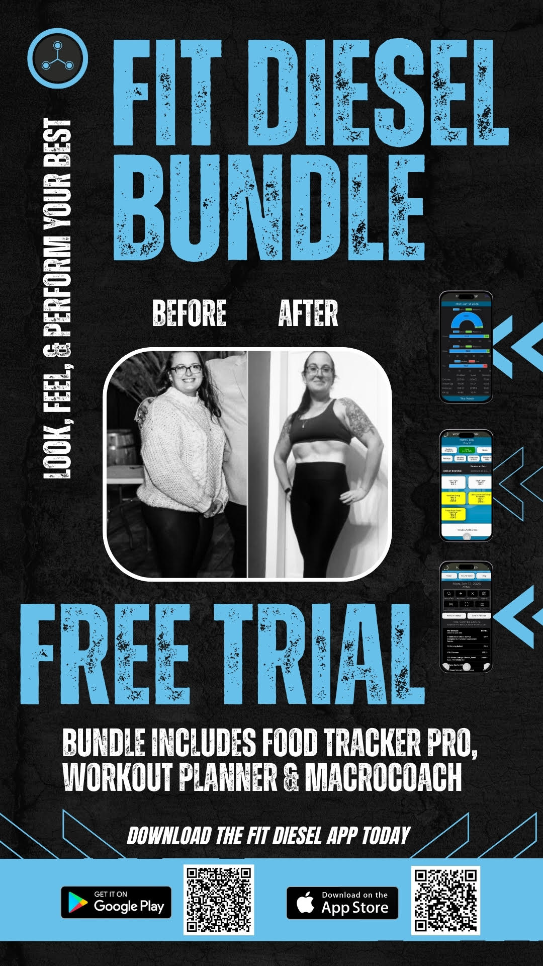 About this serviceThe Fit Diesel Bundle includes MACROCoach, Food Tracker Pro & Workout Planner. You will be provided with a team of virtual coaches that constantly assess your performance and continually make necessary adjustments.